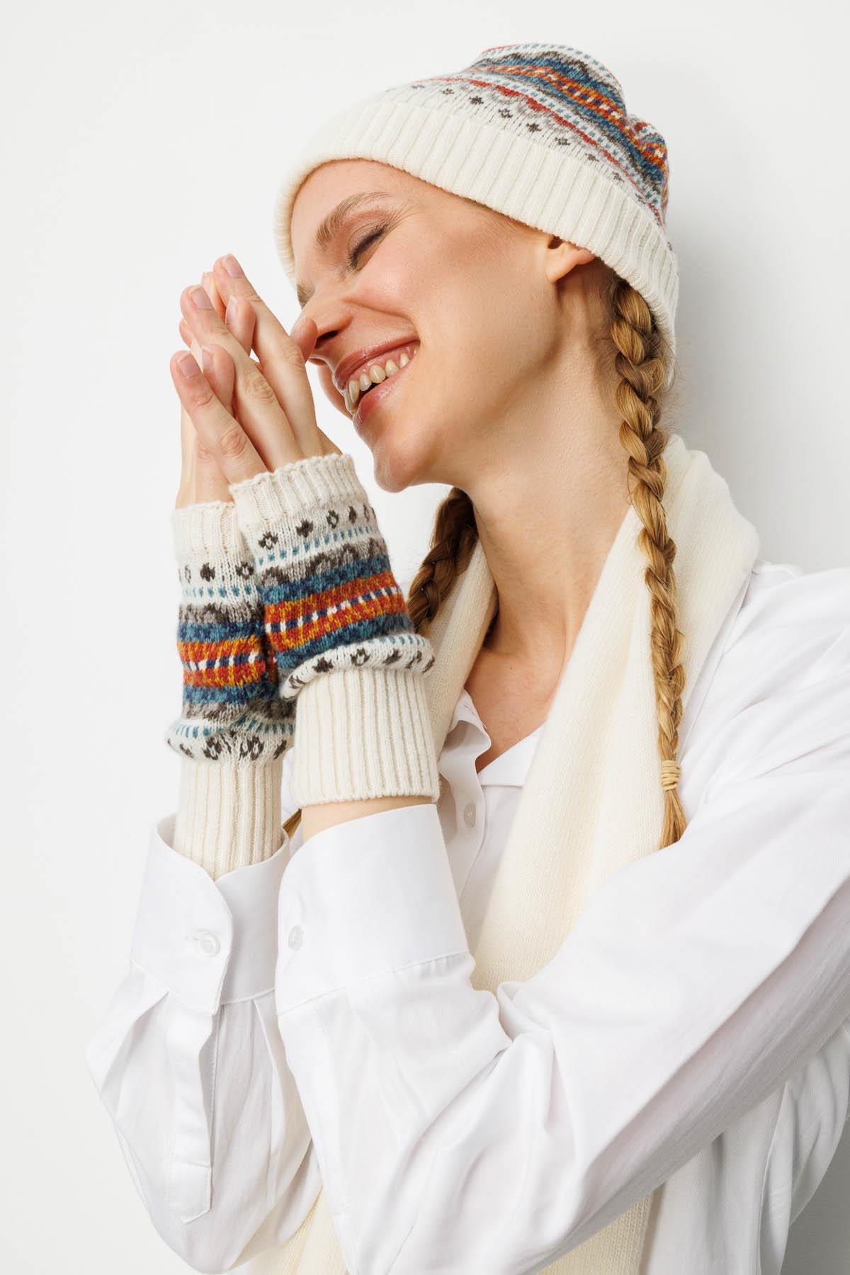 25076Kadın Jakarlı Yün Eldiven Kemik