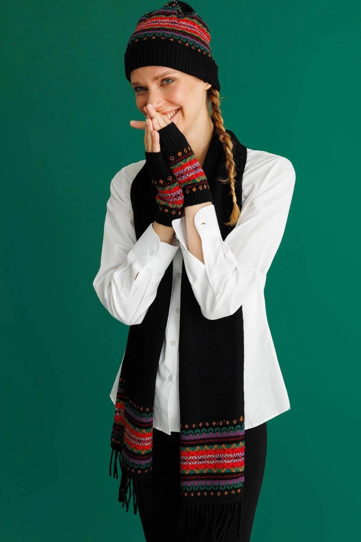 25076Kadın Jakarlı Yün Eldiven Siyah