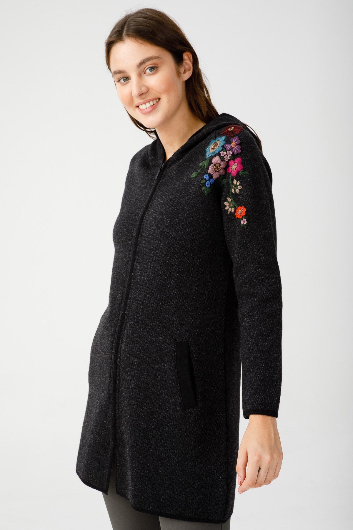 Women's Wool Lacemaking Long Cardigan Black (22011)