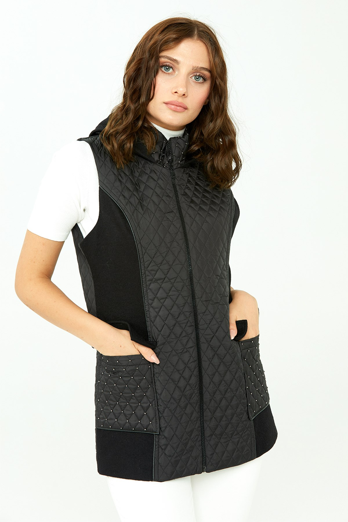 Kadın Kapüşonlu Kapitone Yelek Siyah (21951)