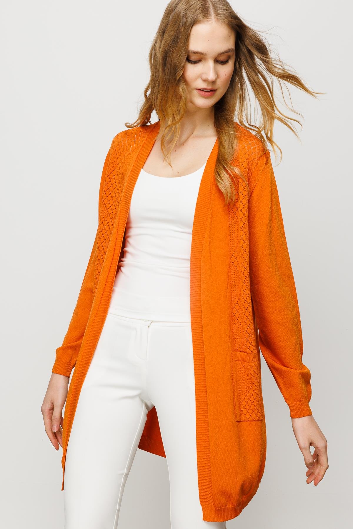 Kadın Önü ve Arkası Şeritli Yazlık Hırka Oranj (23352)