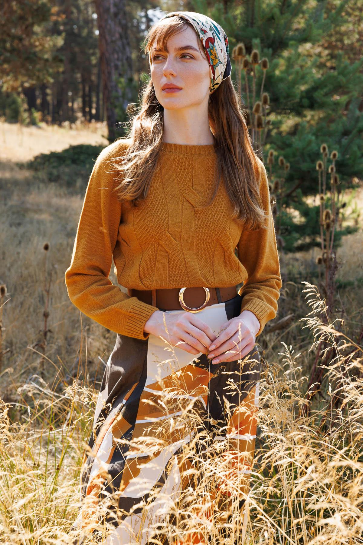 Kadın Sıfır Yaka Kalın Yürütmeli Yün Kazak Hardal (25216)