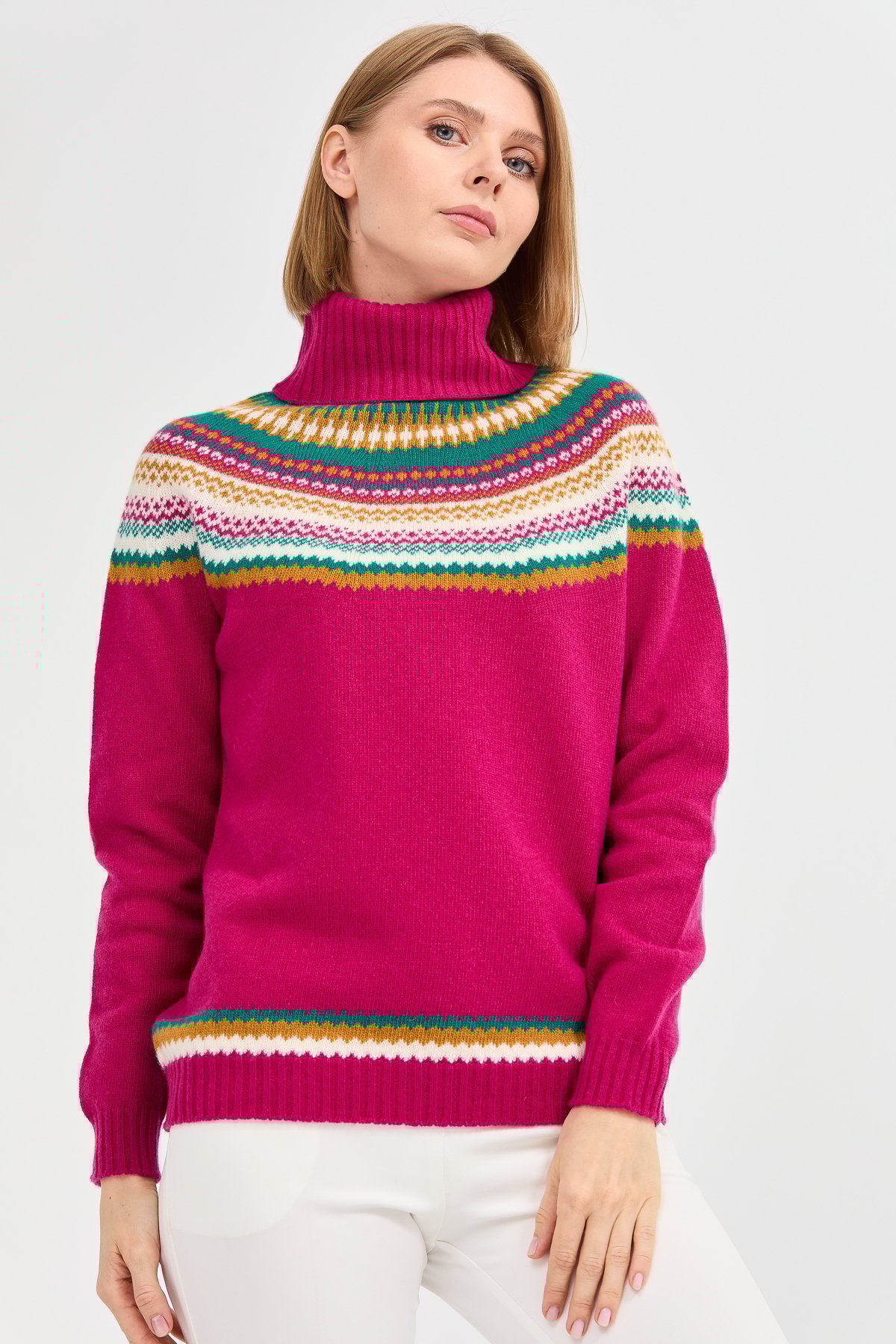 22087Kadın Tam Balıkçı Yaka Yün Kazak Sıklamen