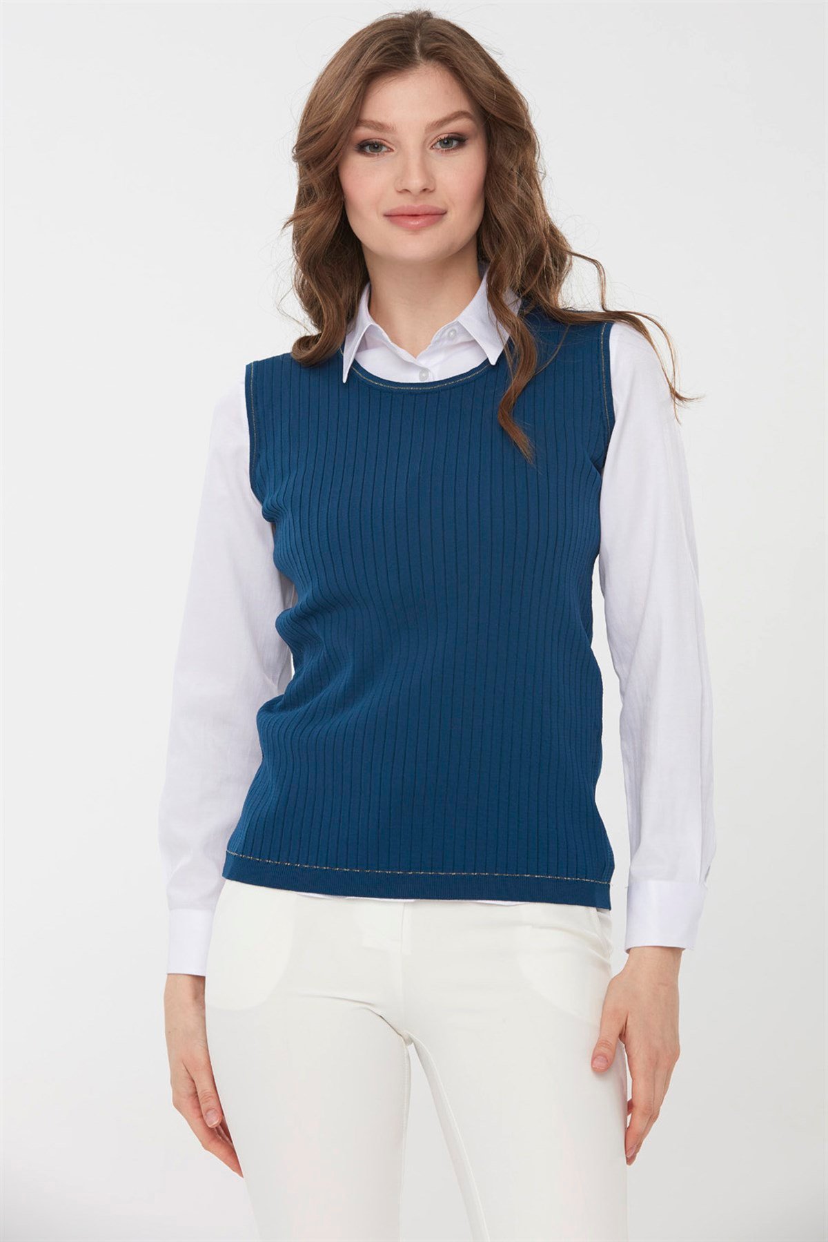 Kadın Triko Kolsuz Bluz İndigo (22360)
