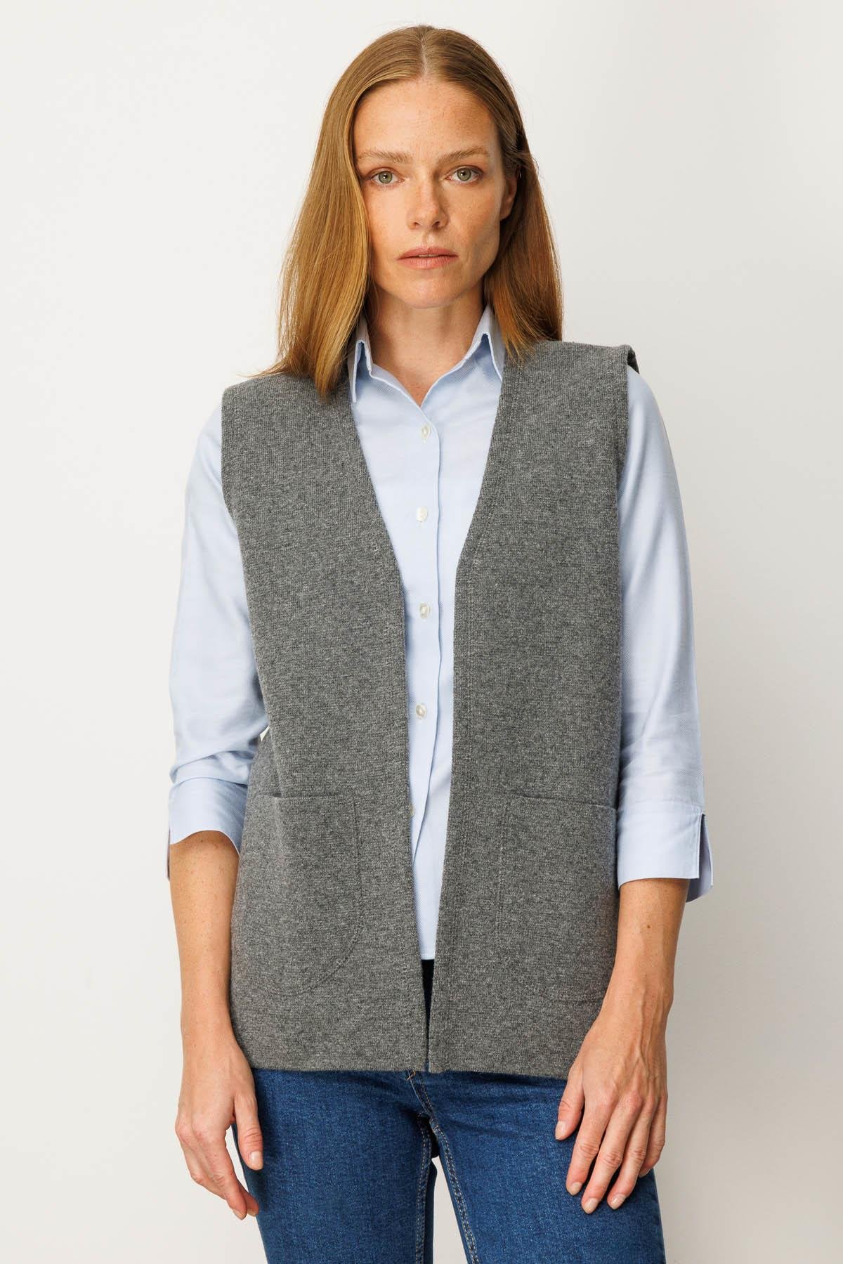 25044Kadın V Yaka Çelik Örgü Yün Anne Yelek Füme