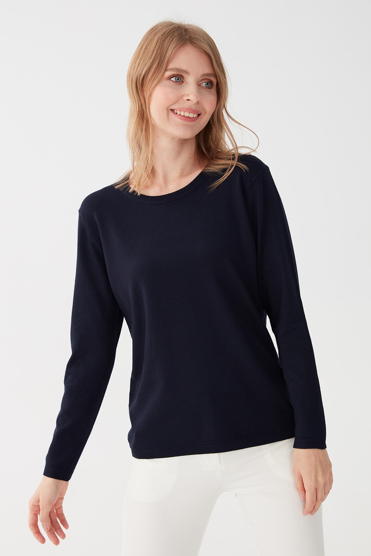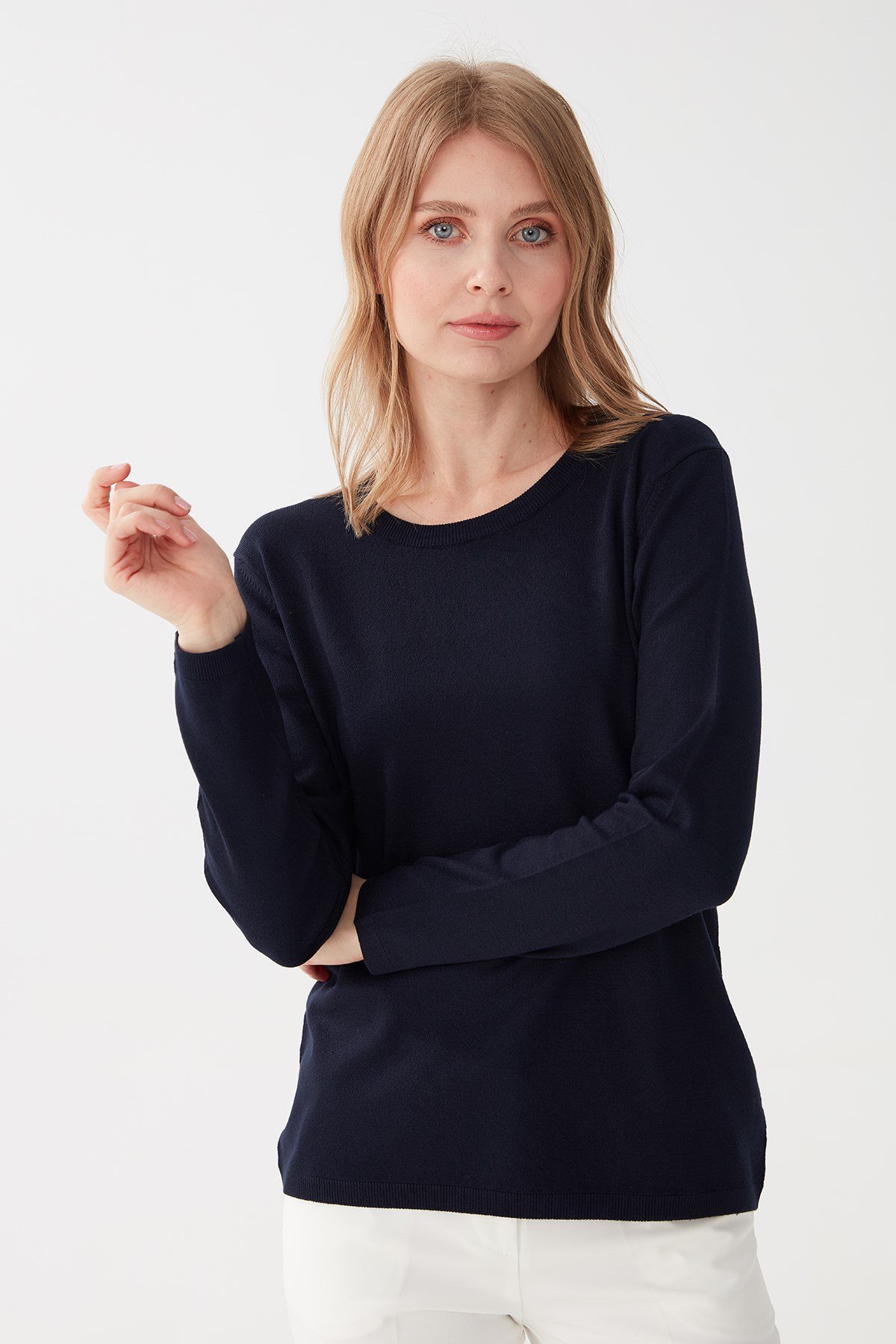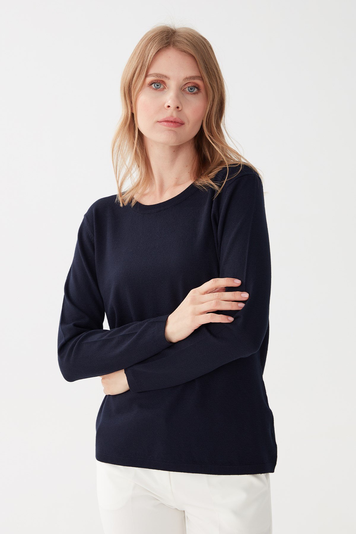 Женская базовая блузка из лайкры с круглым вырезом темно-синяя (20015)