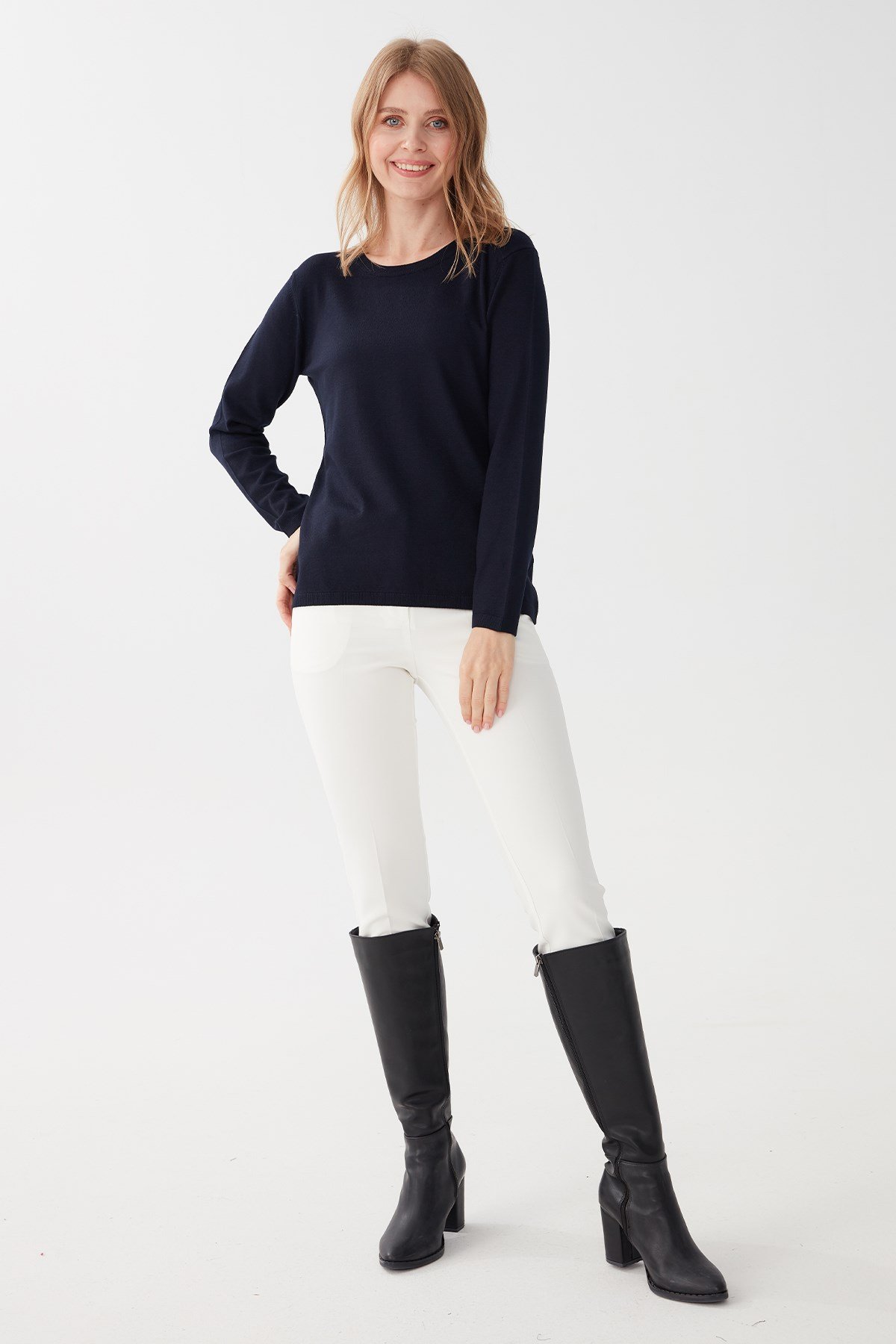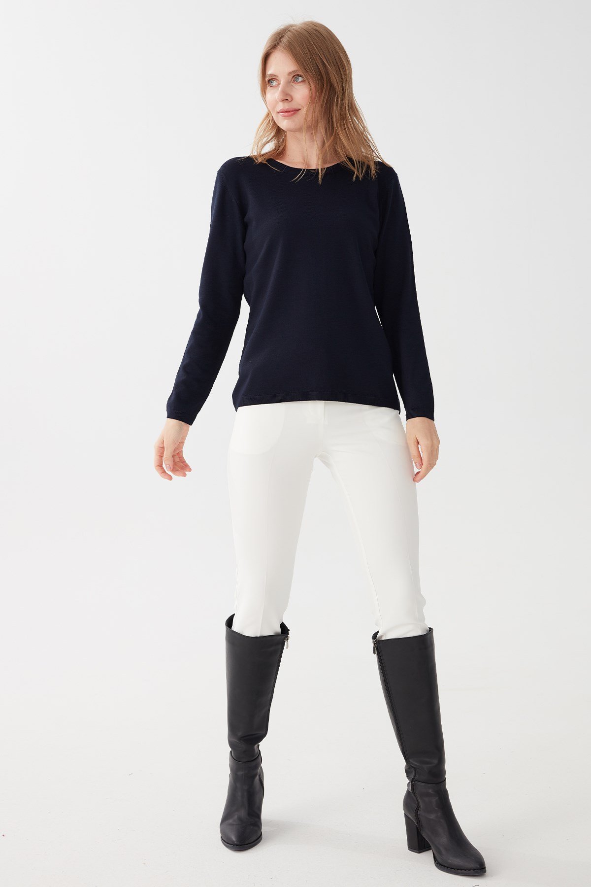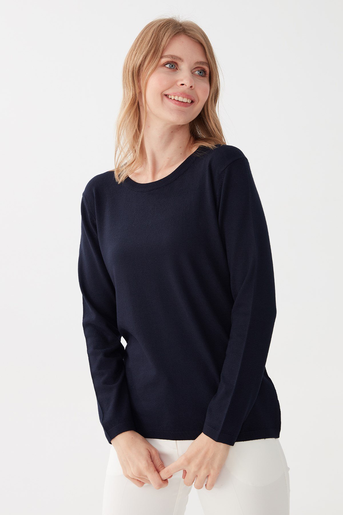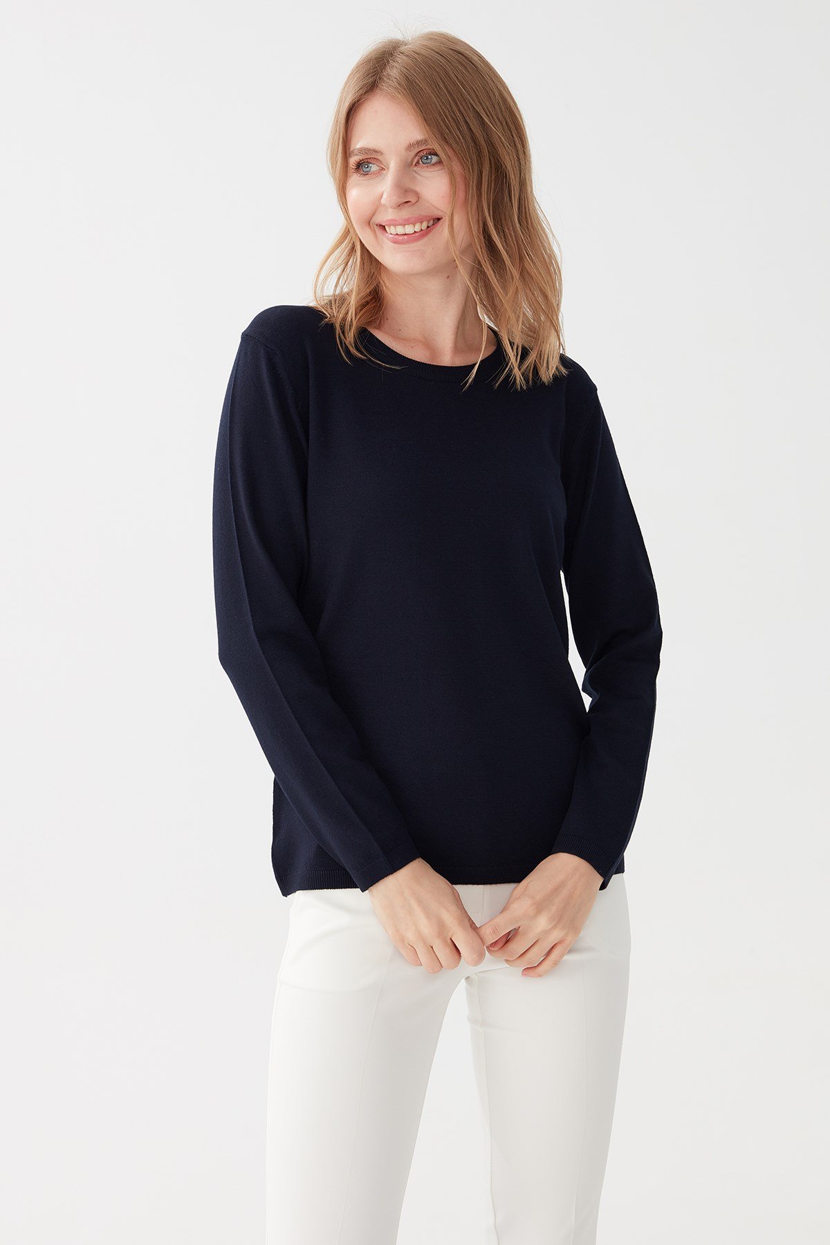 Женская базовая блузка из лайкры с круглым вырезом темно-синяя (20015)
