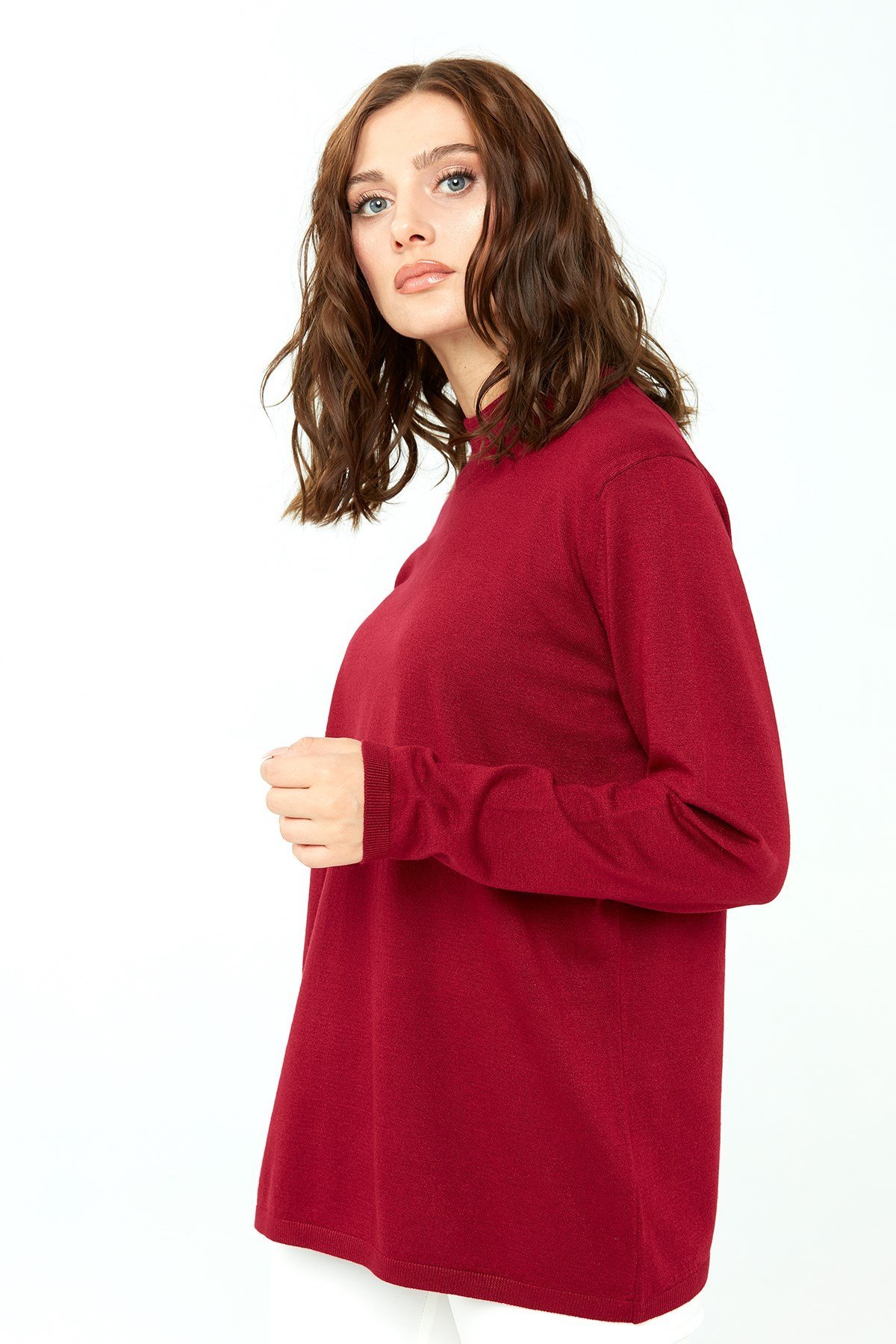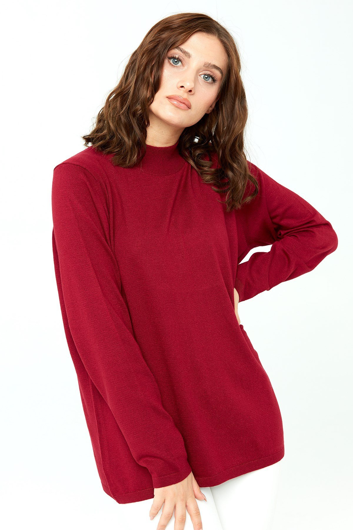 Женская базовая блузка с высоким воротником из лайкры цвета вишни (20016)