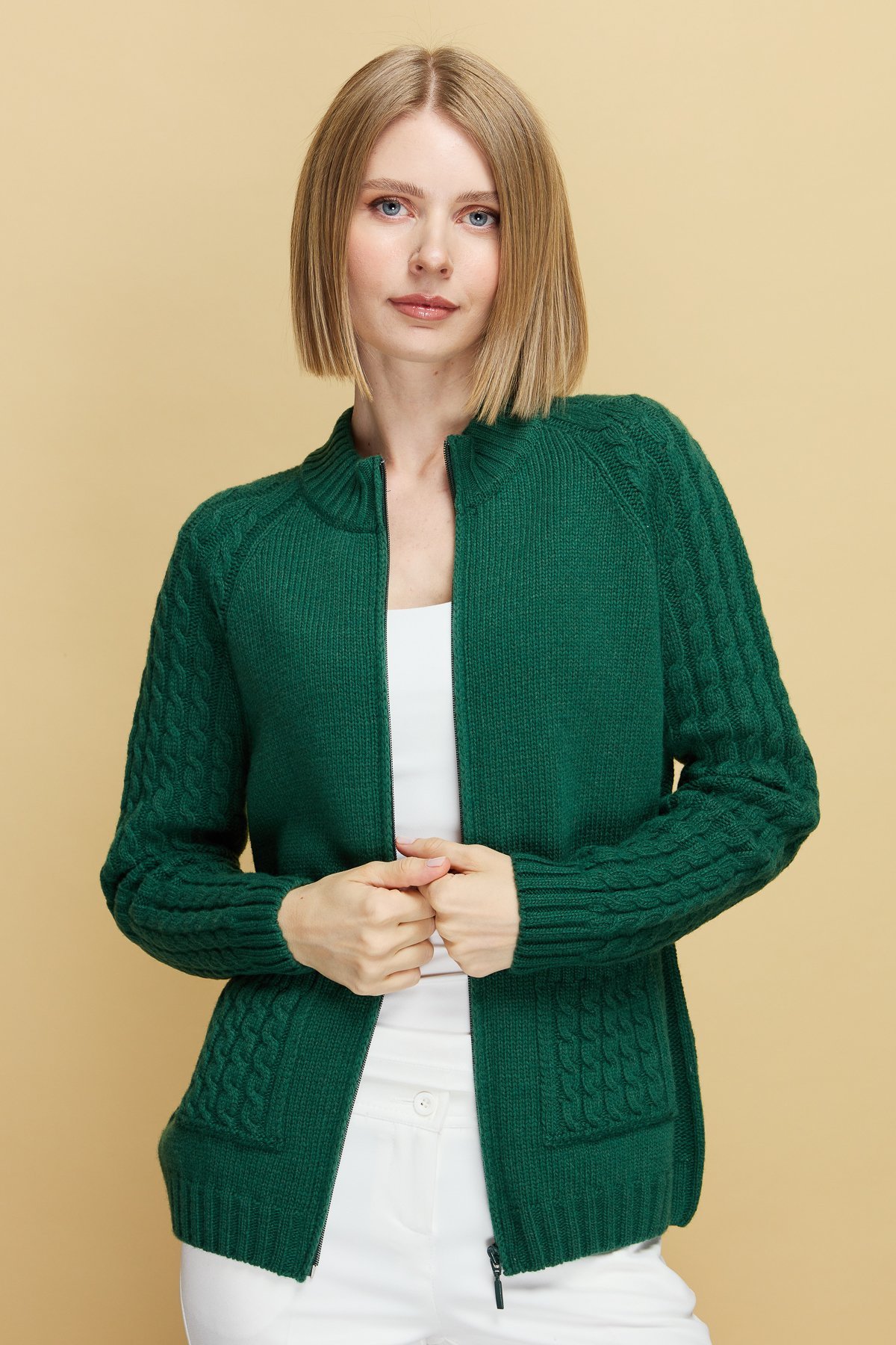 Женская вязаная шерстяная куртка с воротником-стойкой, карманом и рукавами для волос (23203)