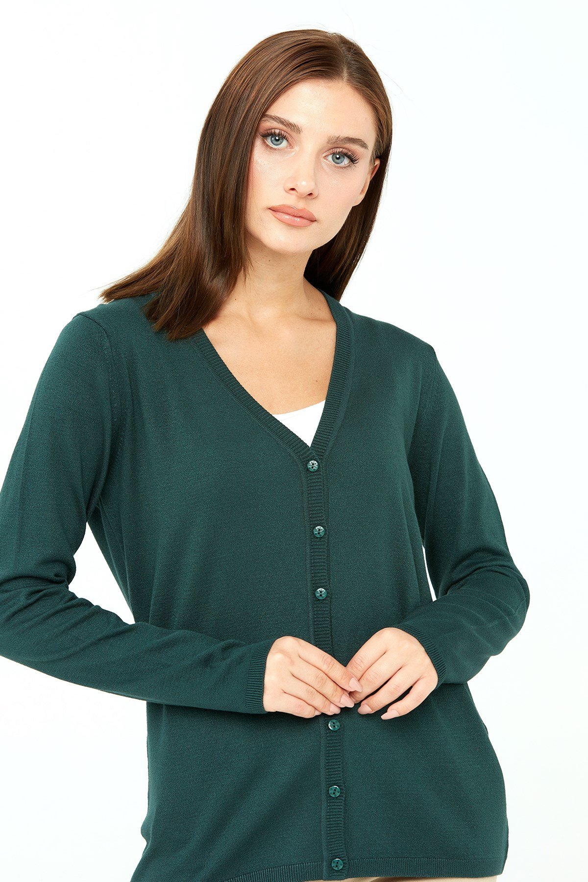Женский базовый кардиган из лайкры с V-образным вырезом темно-зеленый (20008)