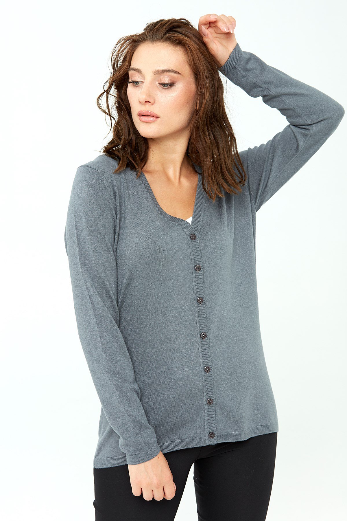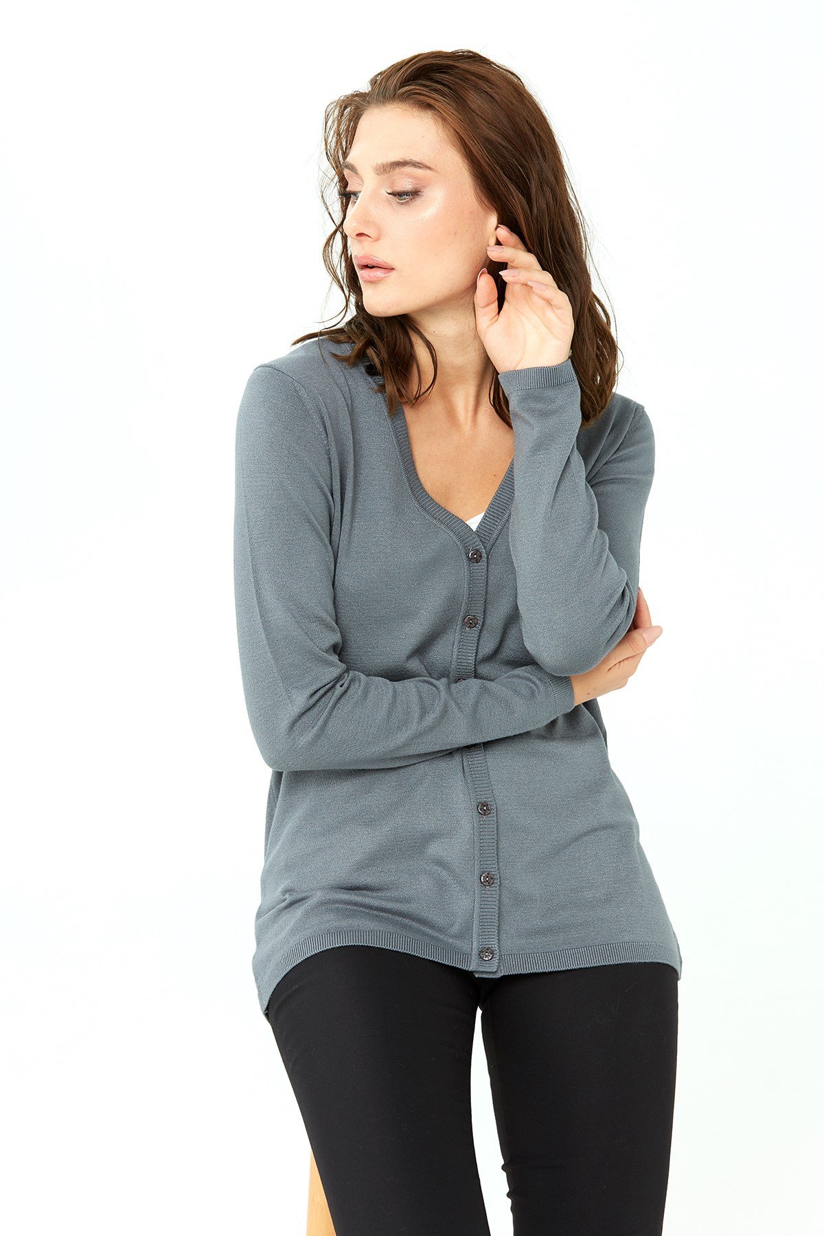 Женский кардиган из лайкры V-образным вырезом Цвет серый