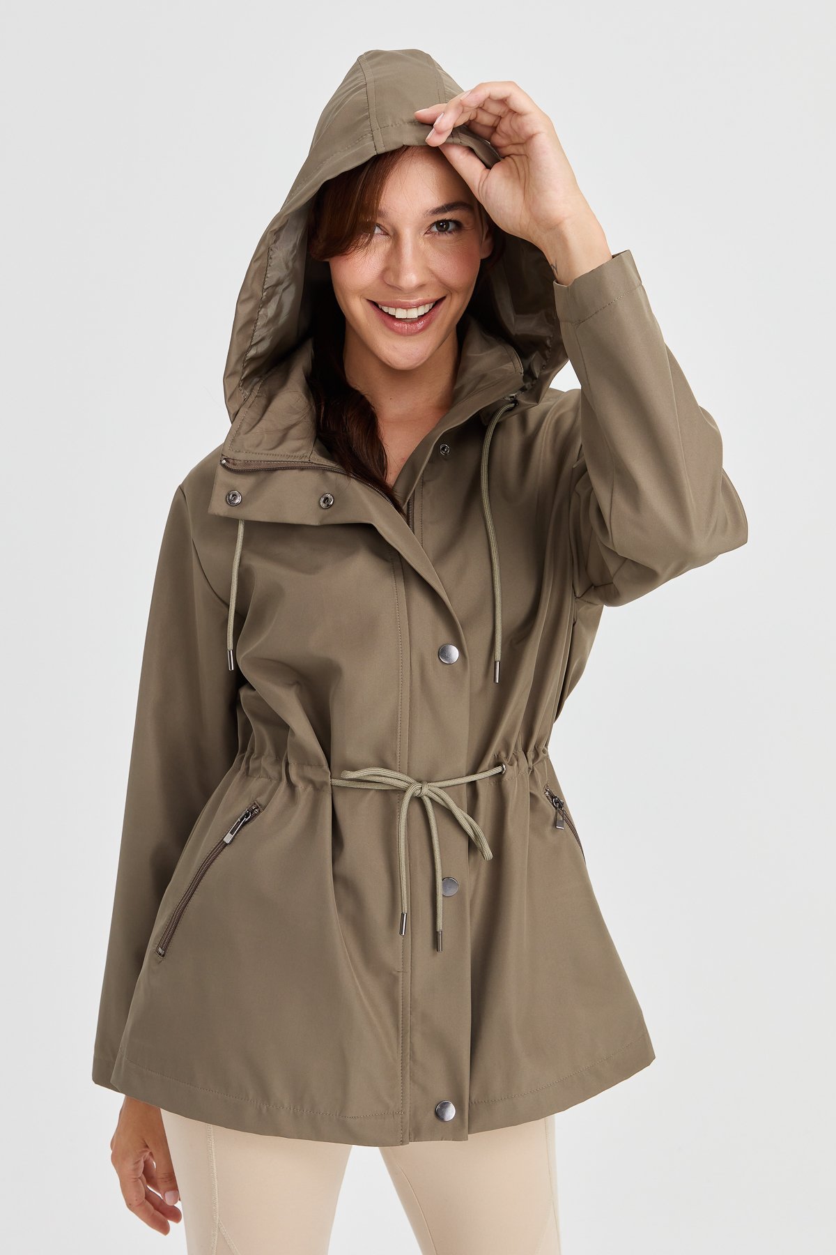 23407Kadın Kapüşonlu Kısa Trençkot Yeşil
