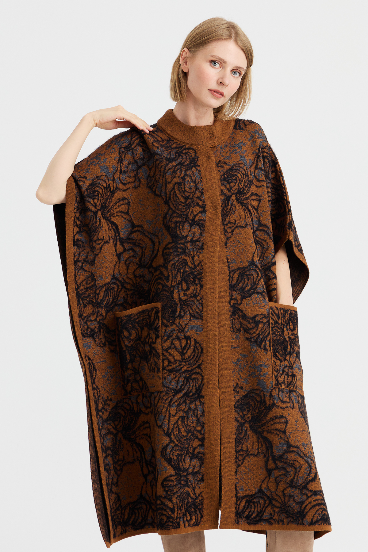 Женский трикотаж Пончо с высоким воротником и волнистым узором (23066)