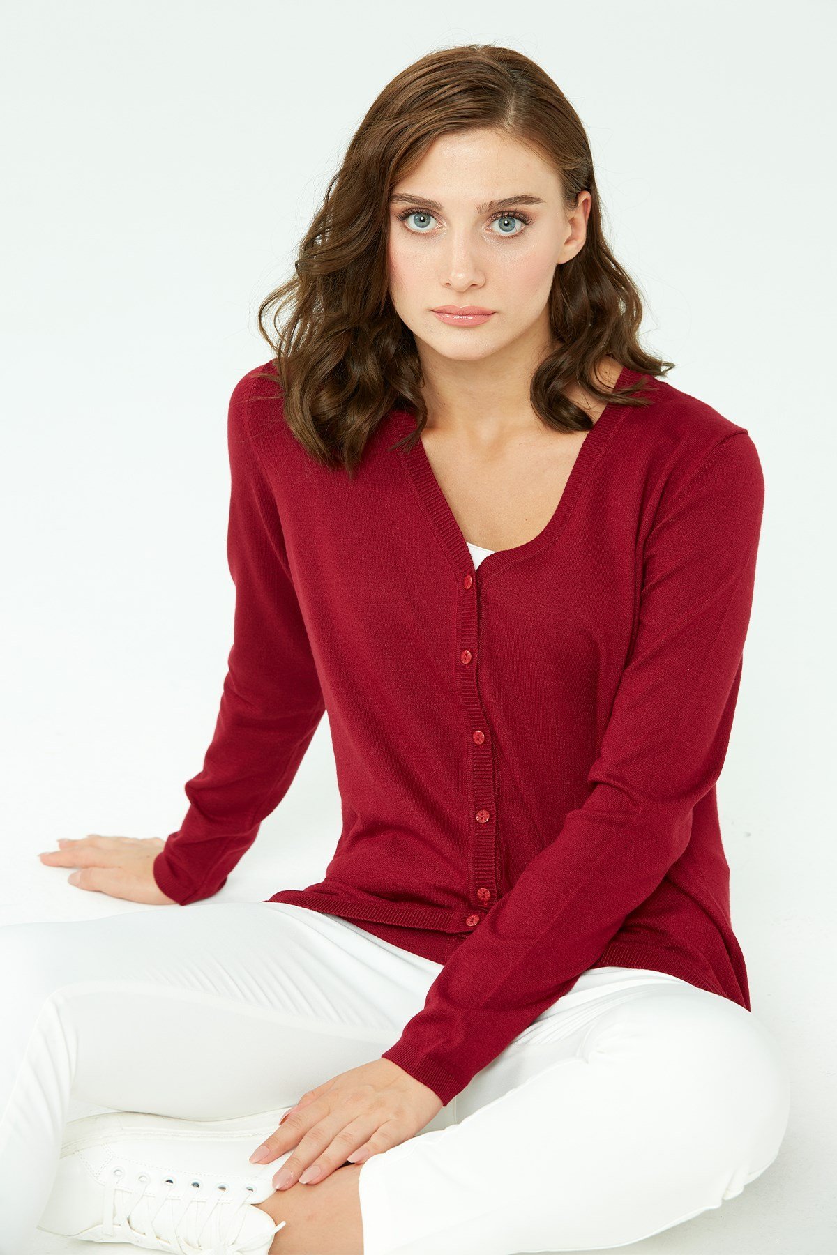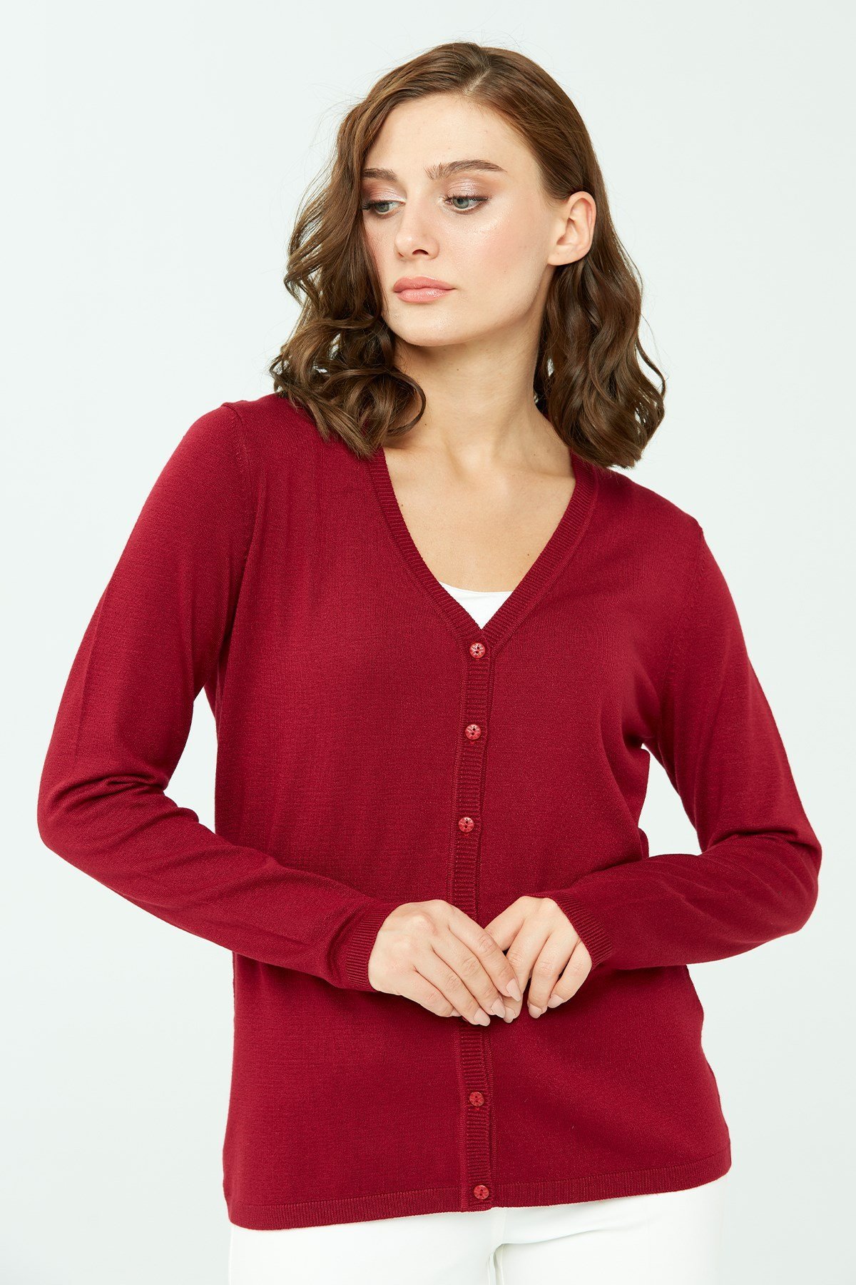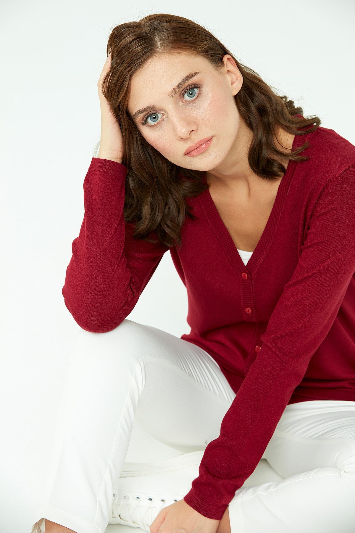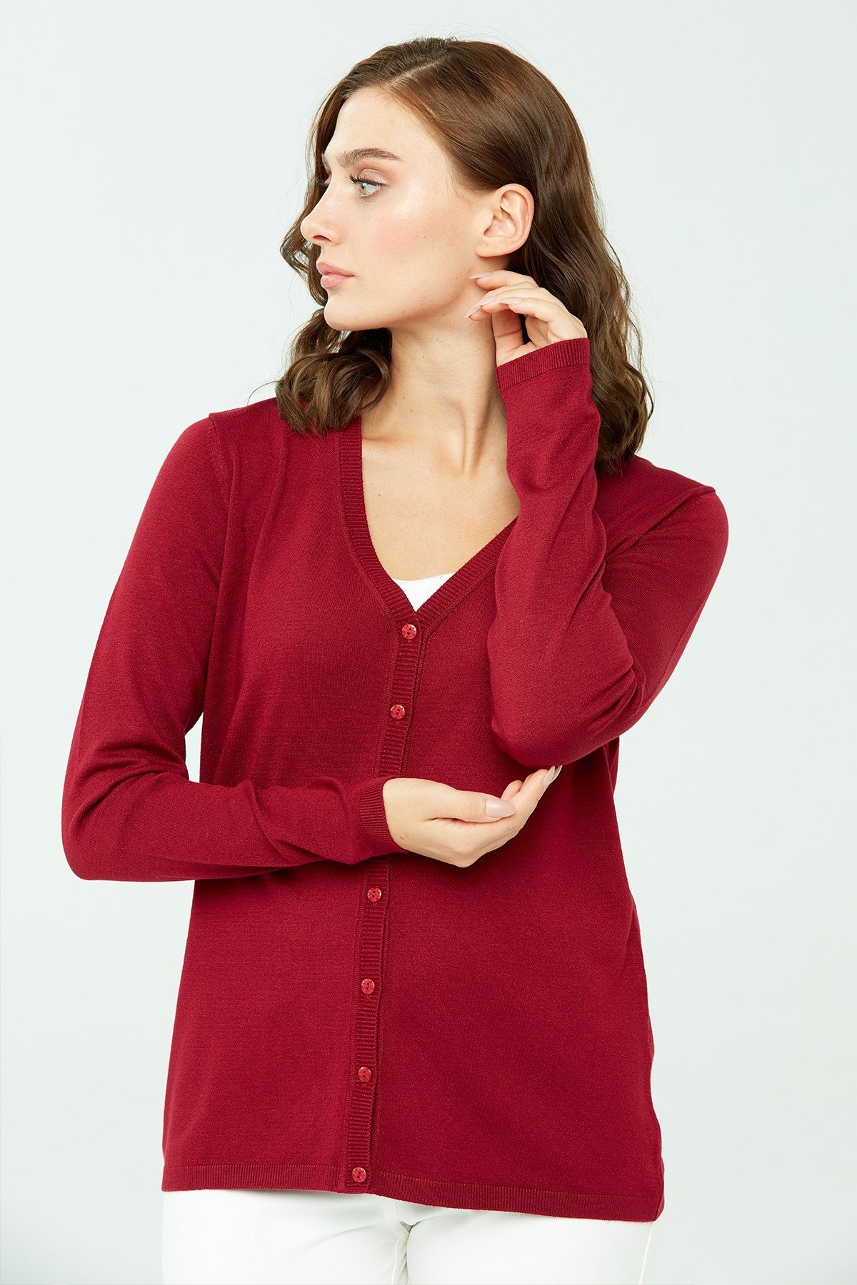 Женский базовый кардиган из лайкры с V-образным вырезом Вишневый цвет (20008)