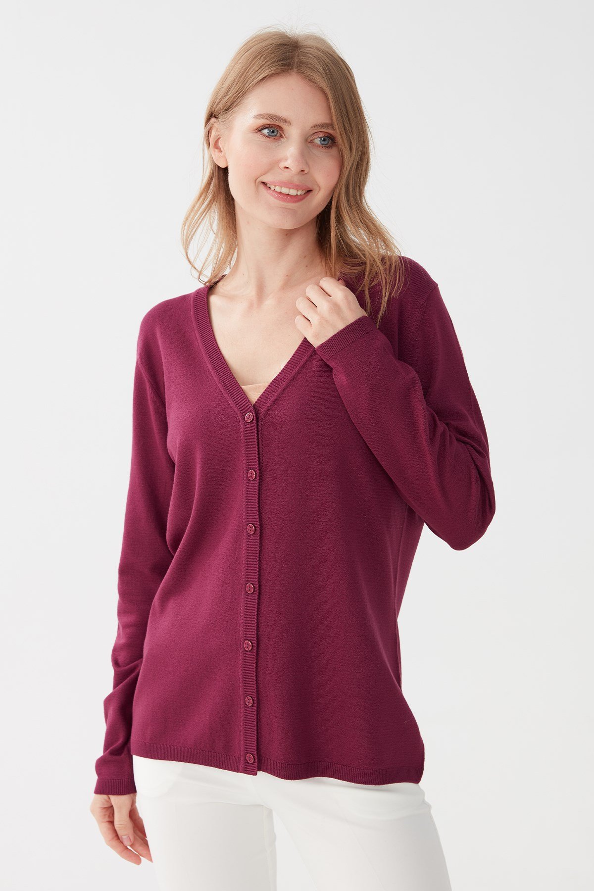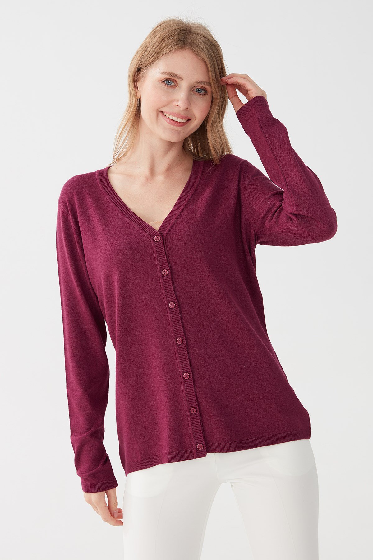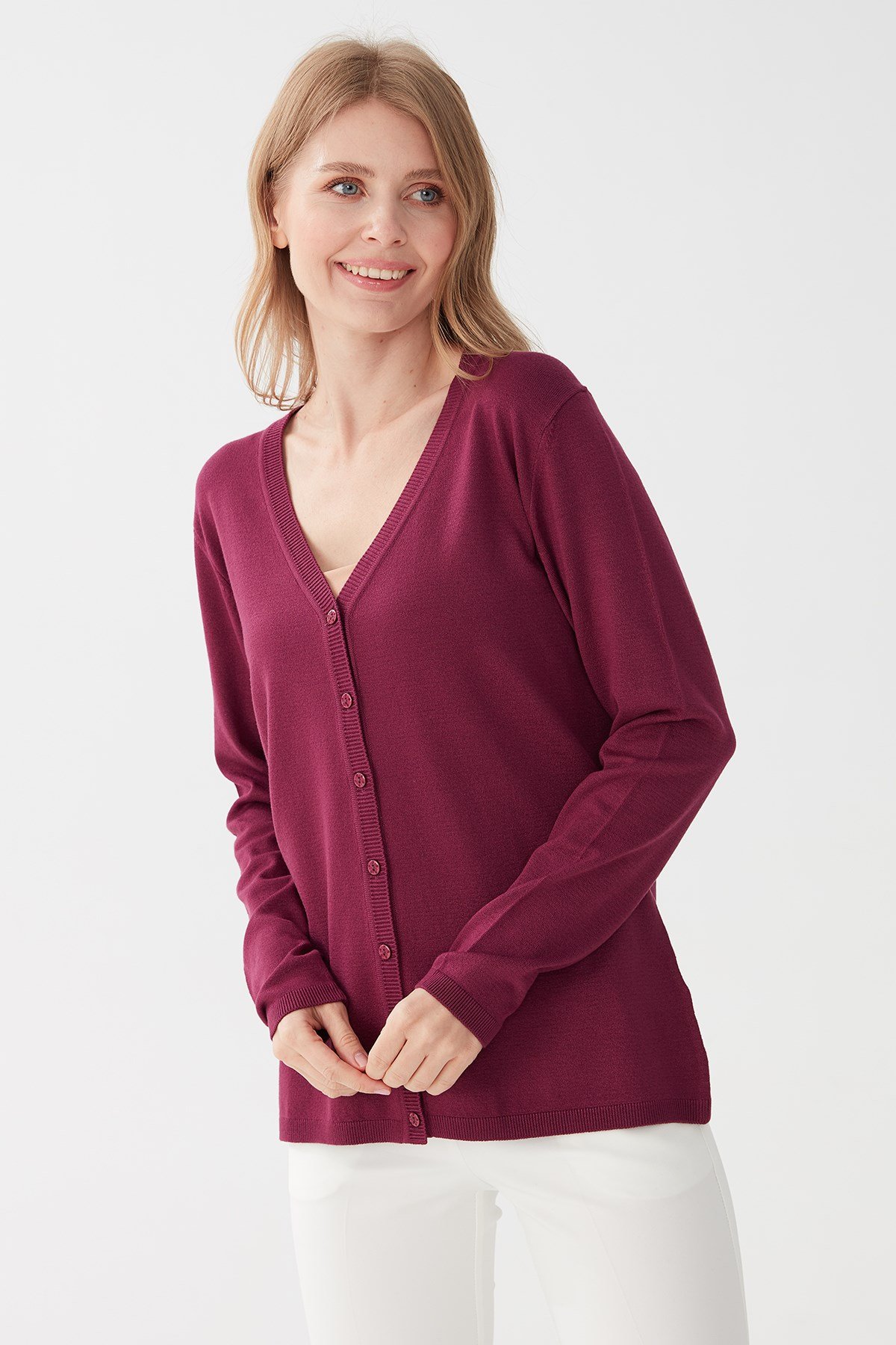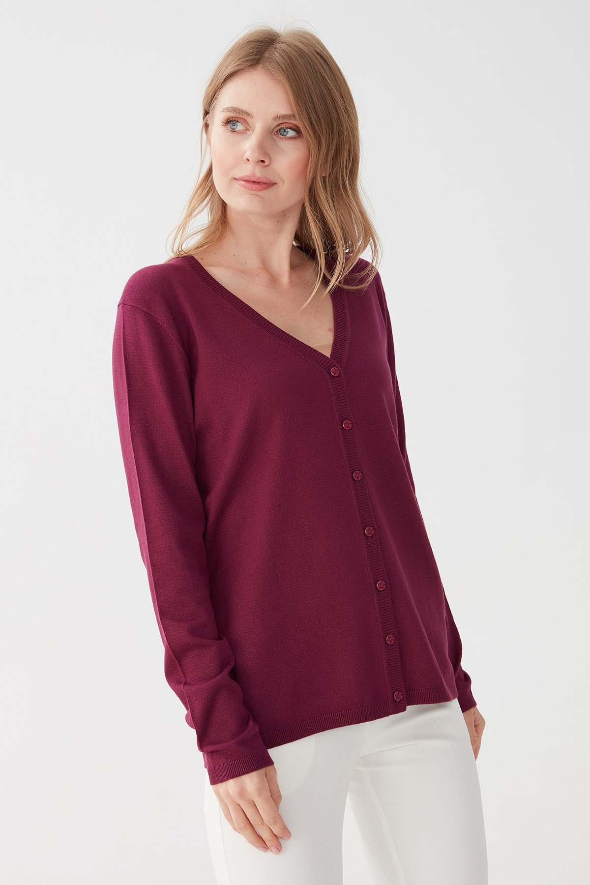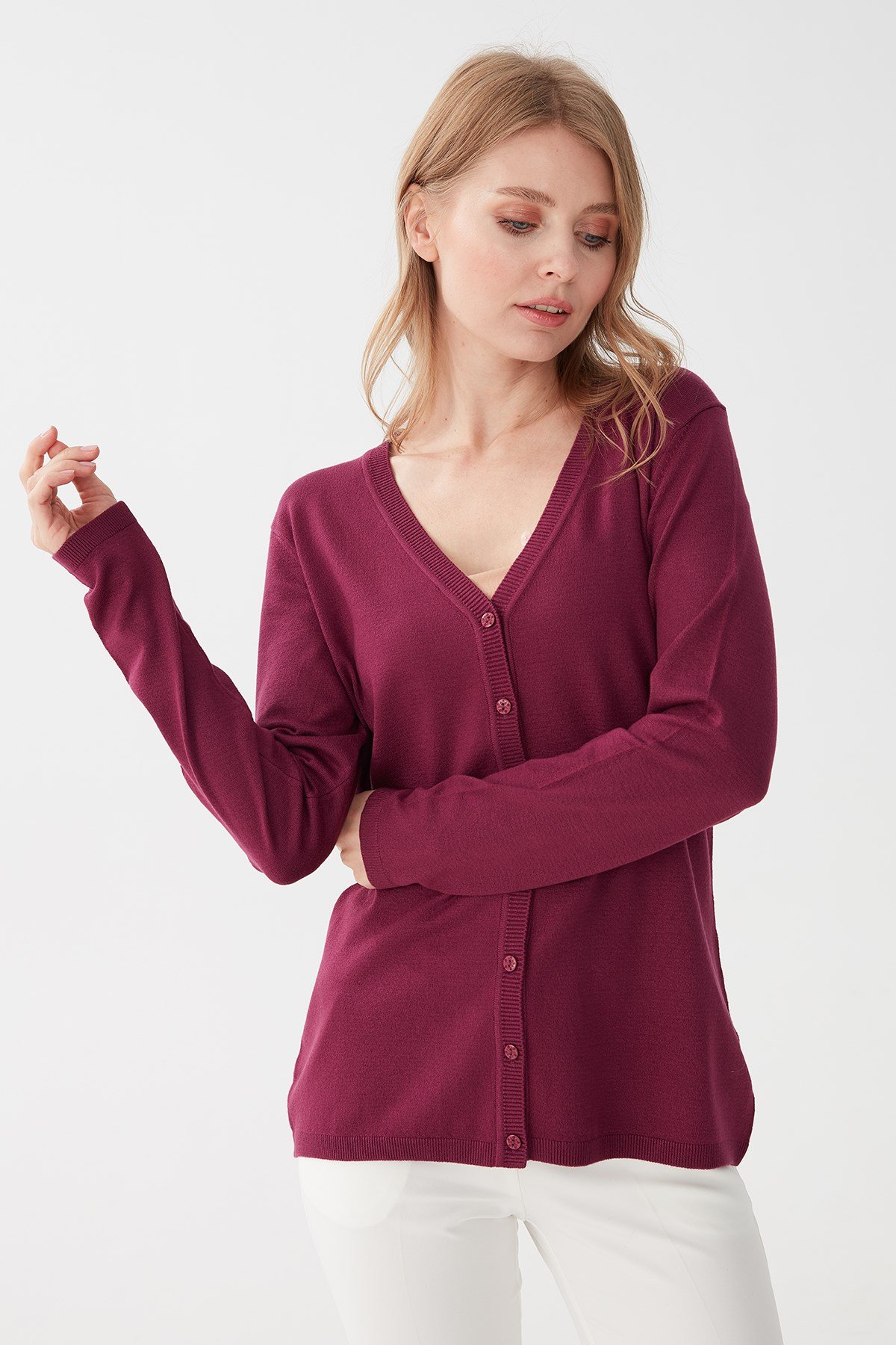 Женский базовый кардиган из лайкры с V-образным вырезом цвета сливы (20008)