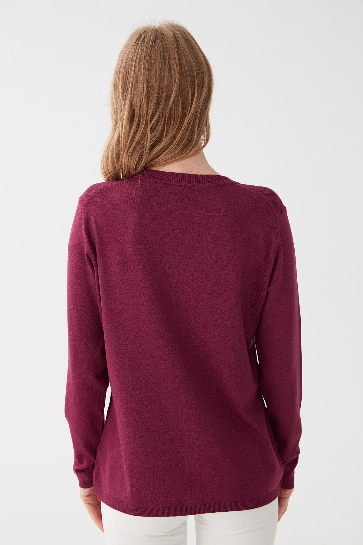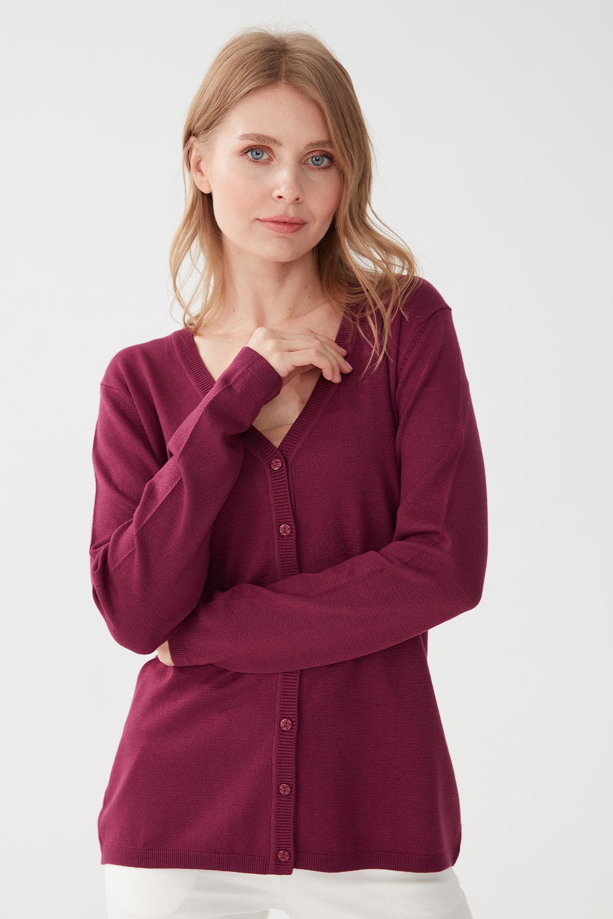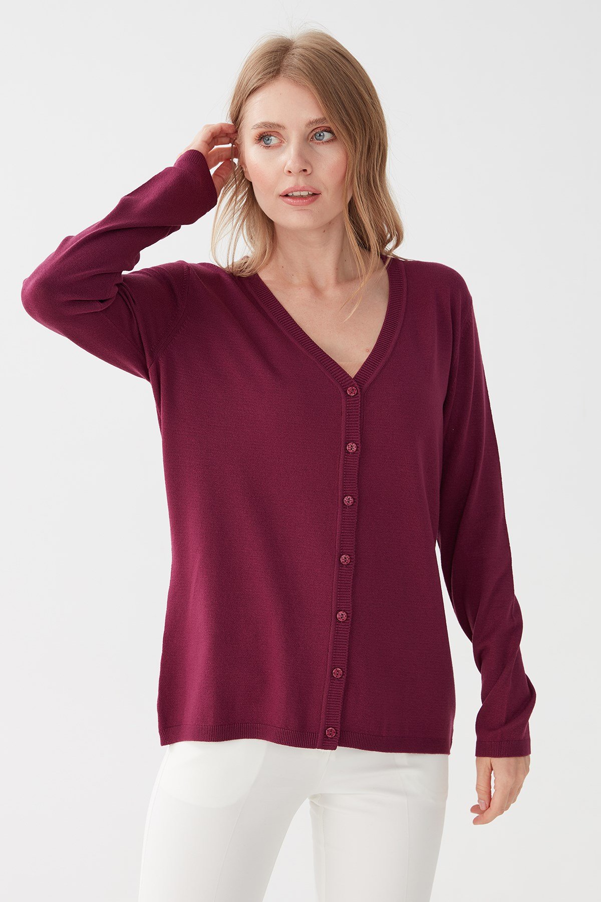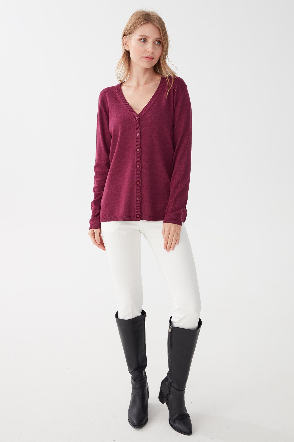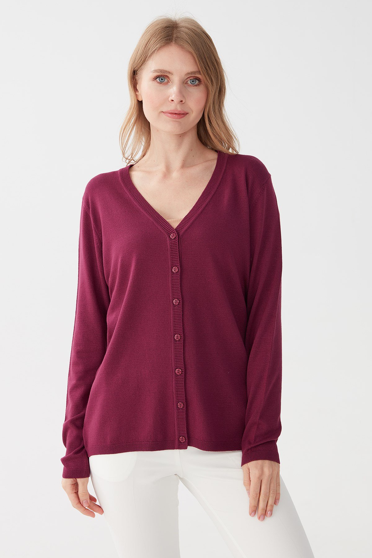 Женский базовый кардиган из лайкры с V-образным вырезом цвета сливы (20008)
