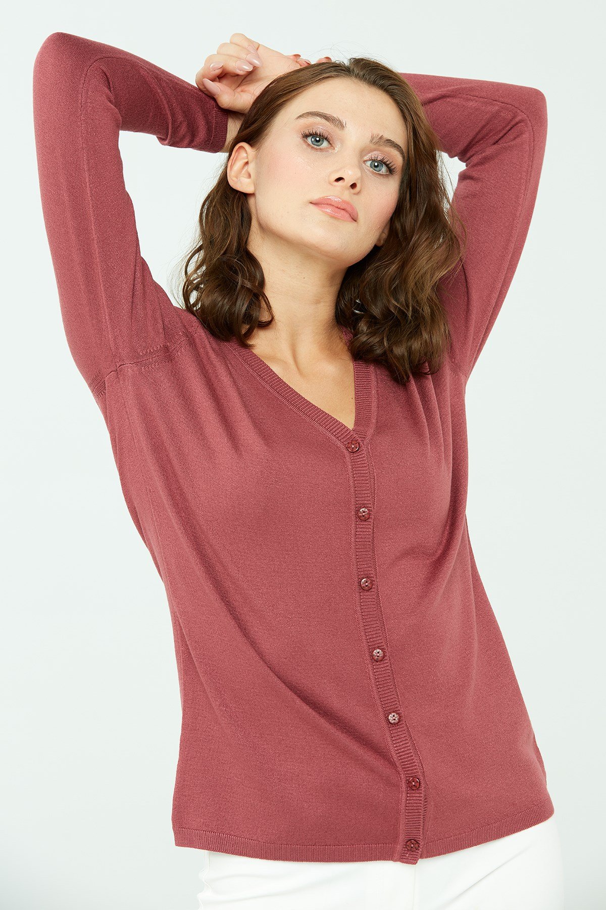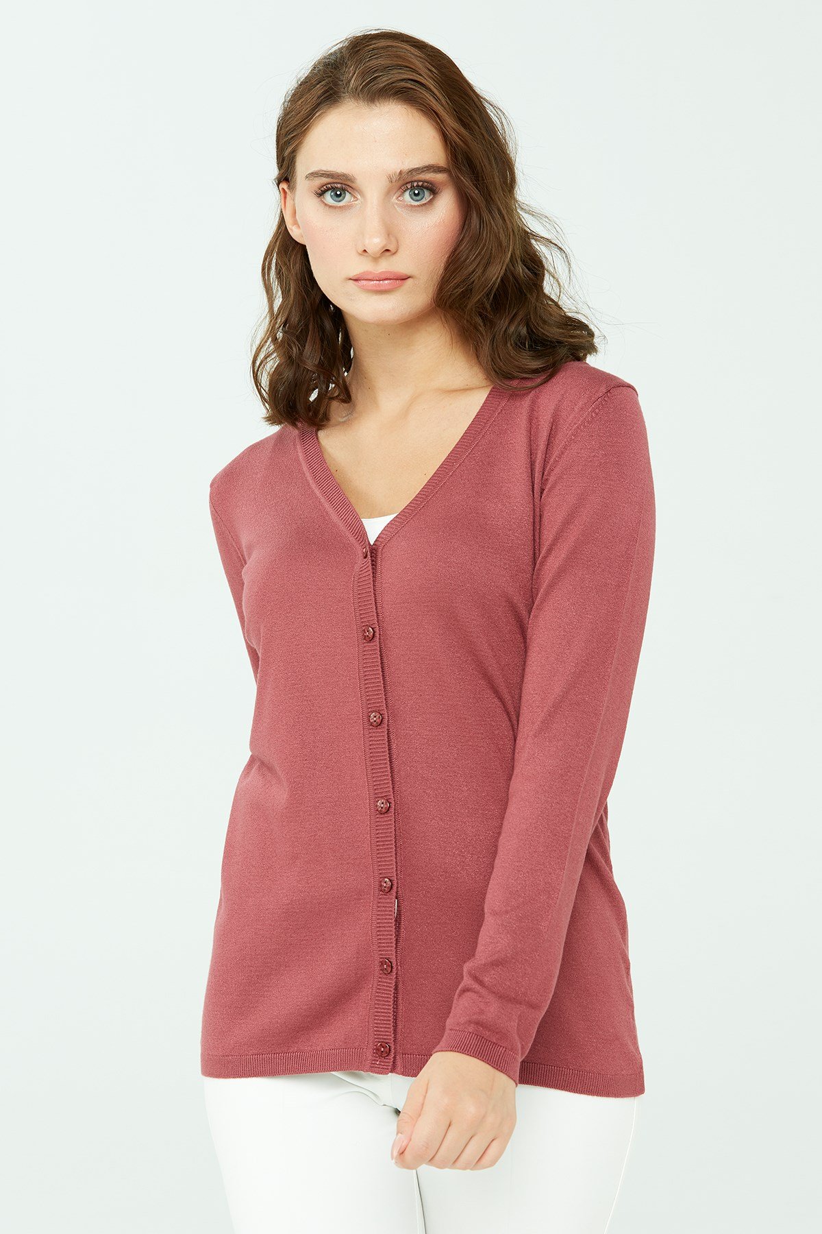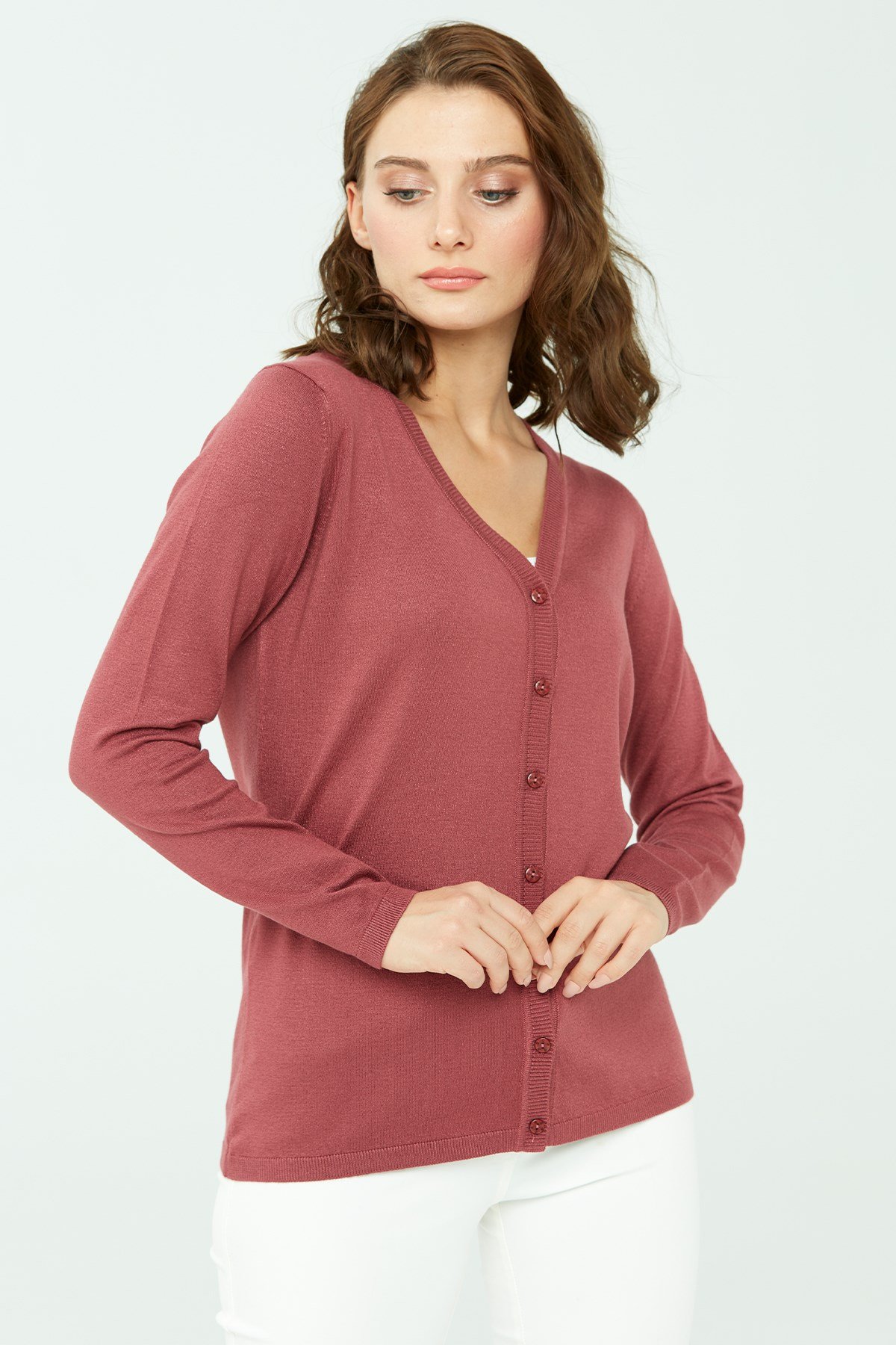 Женский базовый кардиган из лайкры с V-образным вырезом Цвет сушеной розы (20008)