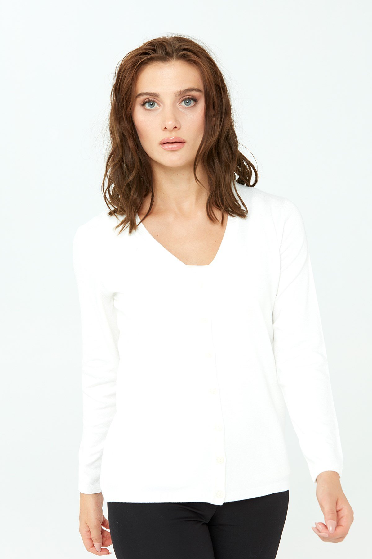 Женский  базовый кардиган из лайкры V-образным вырезом кремового цвета