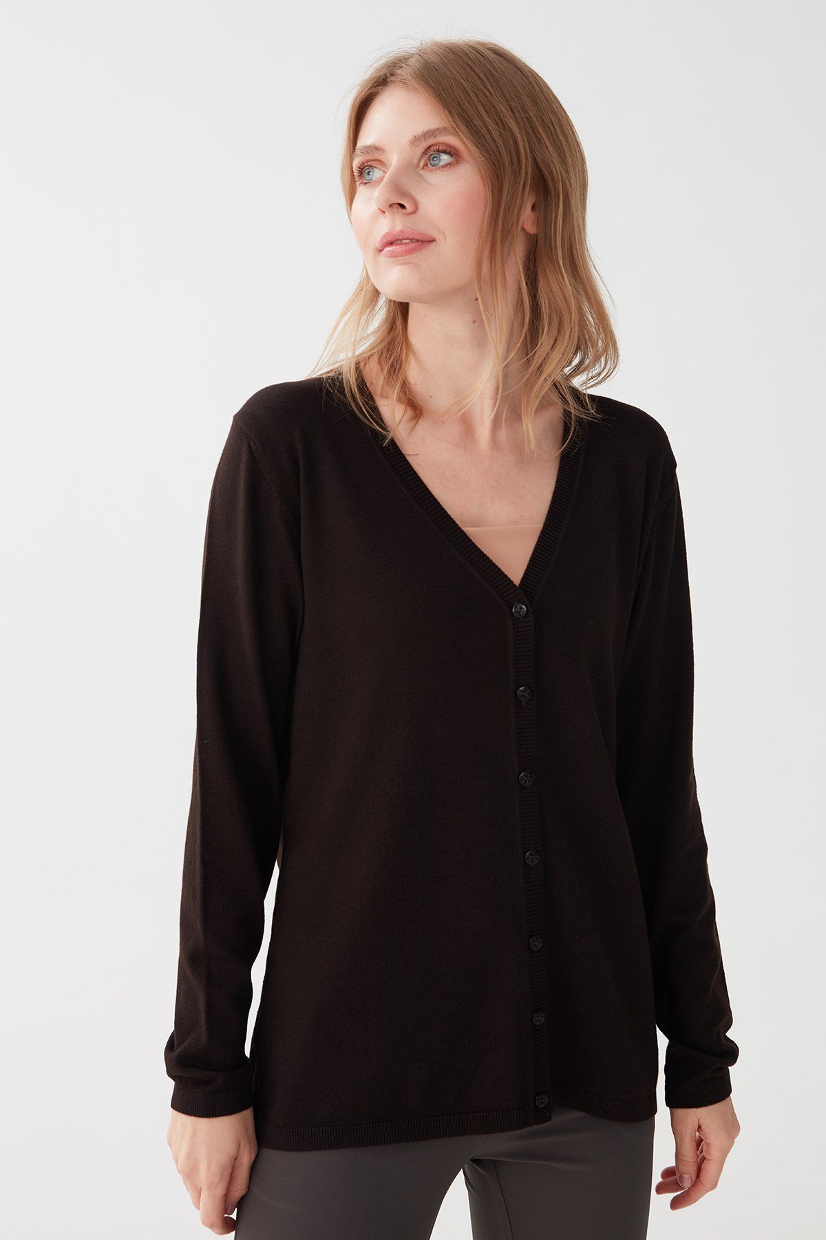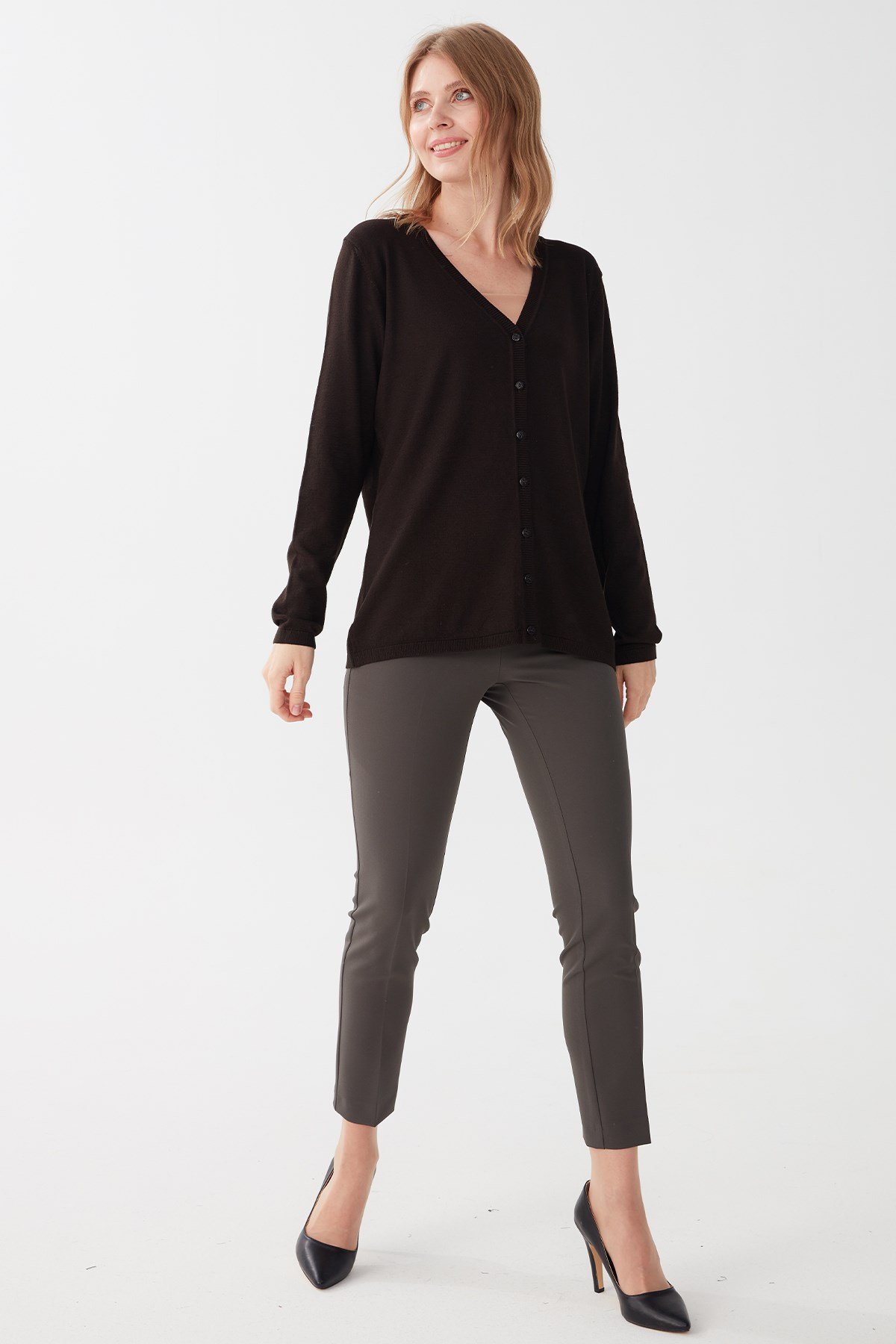 Женский  базовый кардиган из лайкры V-образным вырезом Темно-кофейный