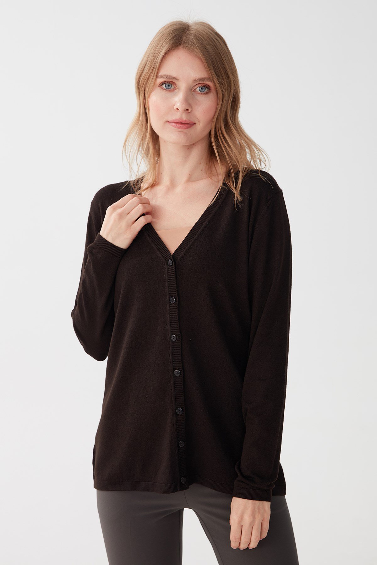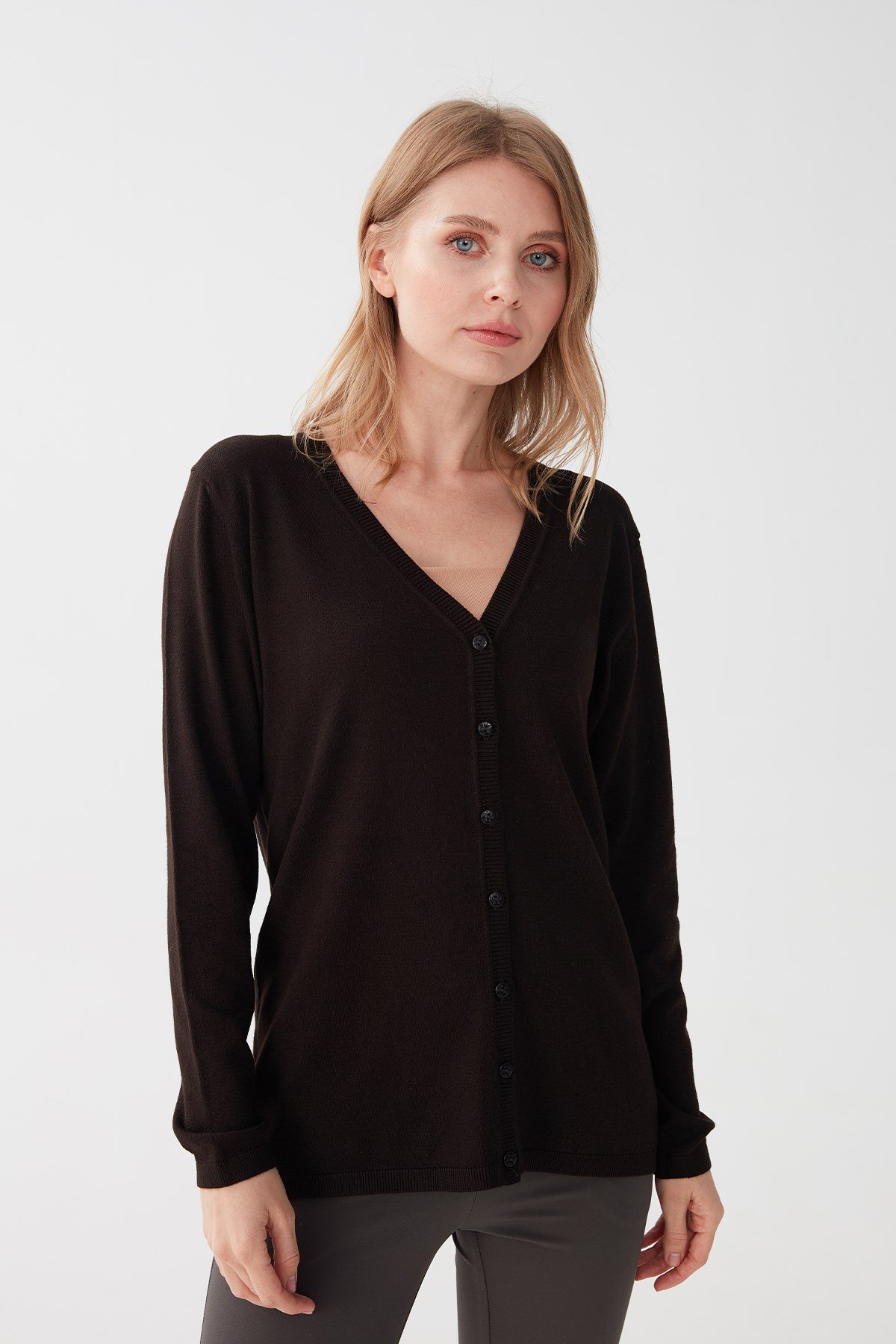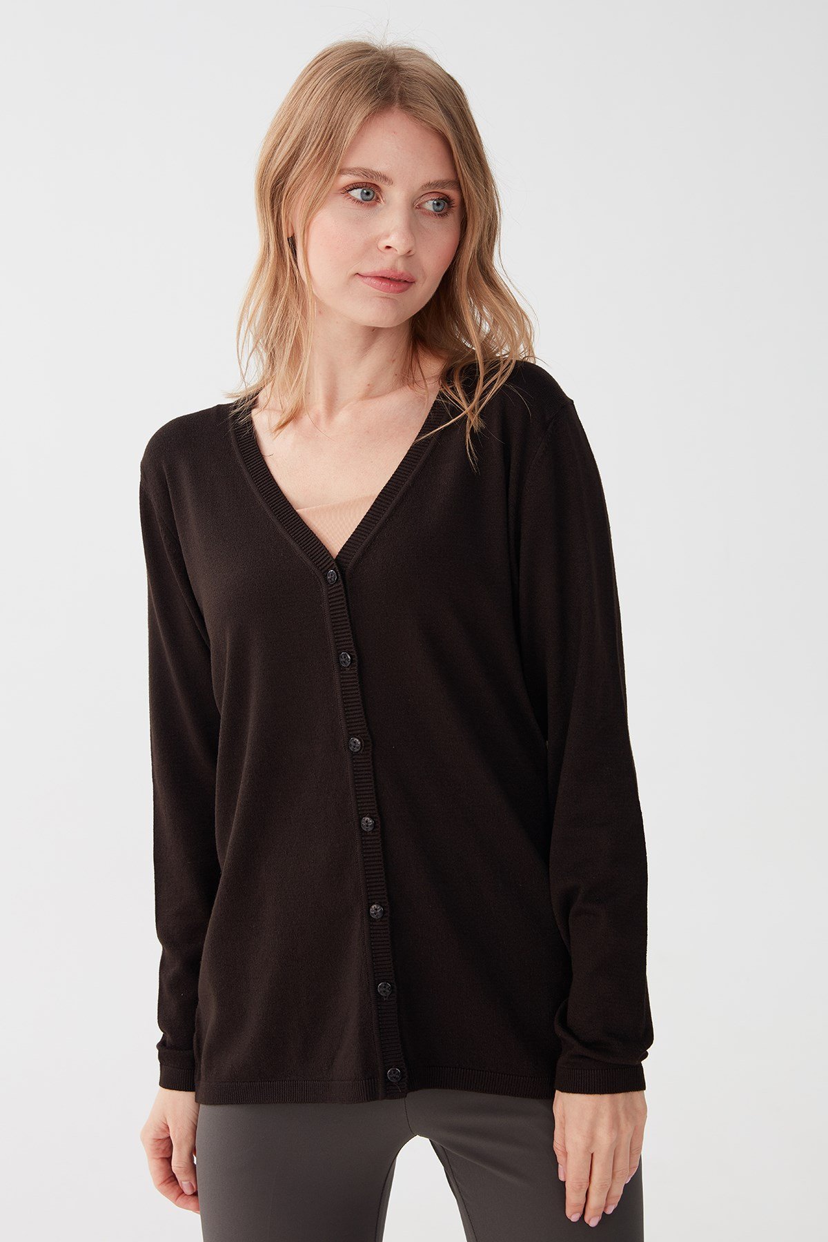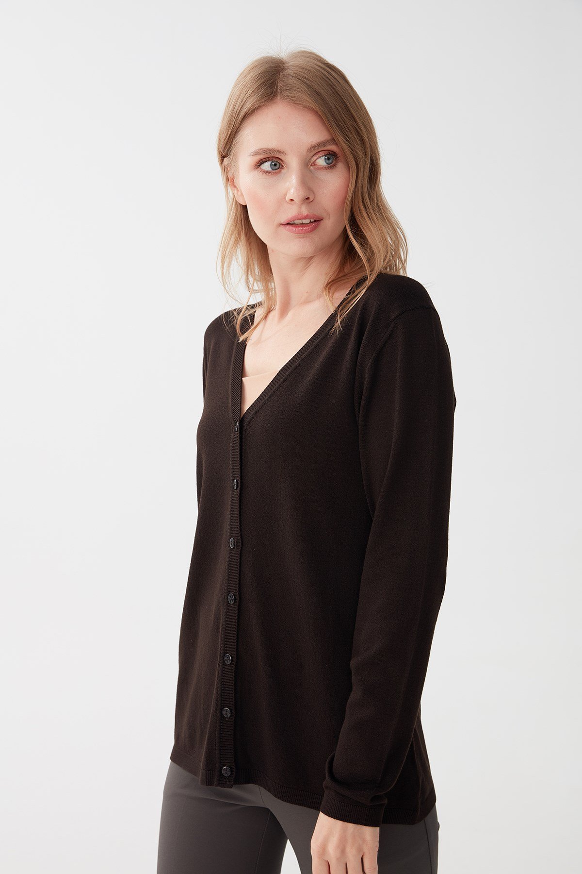 Женский базовый кардиган из лайкры V-образным вырезом Темно-кофейный (20008)