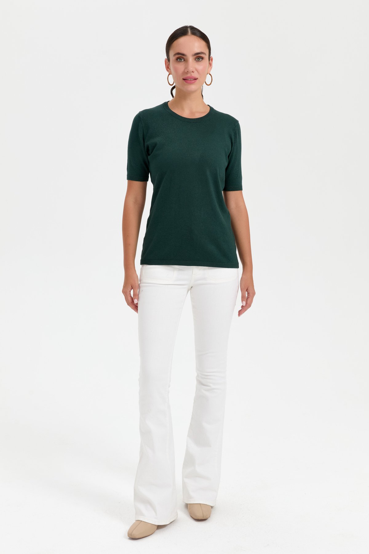 Kadın Likralı Kısa Kollu Sıfır Yaka Düz Bluz Nefti